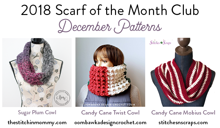 The Candy Cane Mobius Cowl was designed for the Scarf of the Month Club Crochet Along, hosted by Oombawka Designs and The Stitchin Mommy. Check out all this year’s beautiful scarves and cowls!